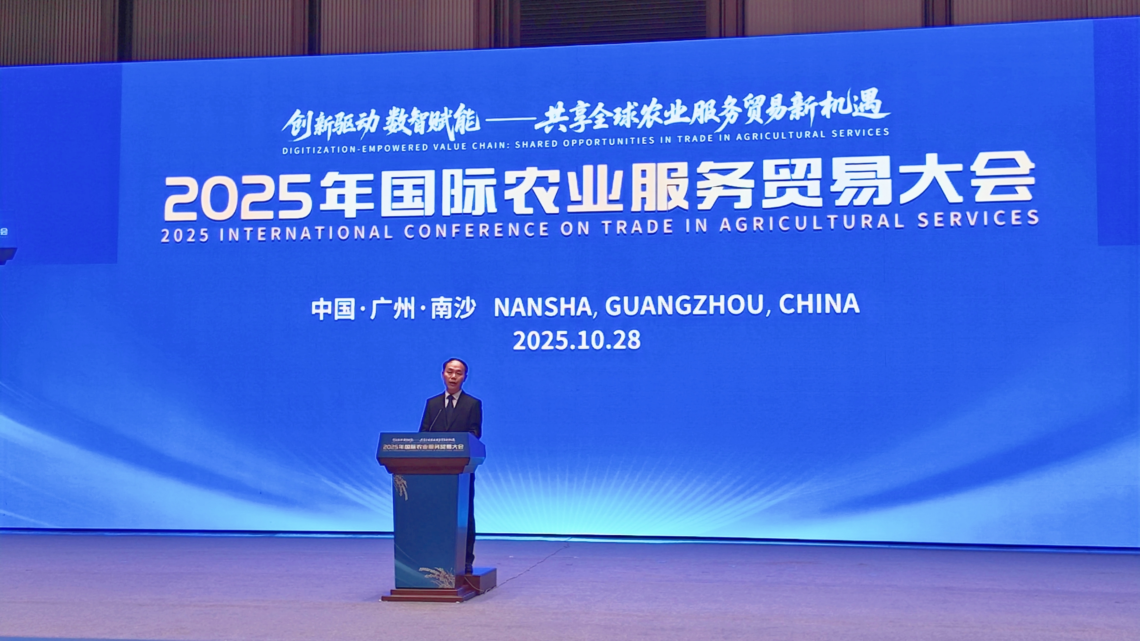 10月28日柳荷投资,2025年国际农业服务贸易大会在广州市南沙国际会展中心盛大开幕。农业农村部党组成员、副部长张治礼出席并致辞。